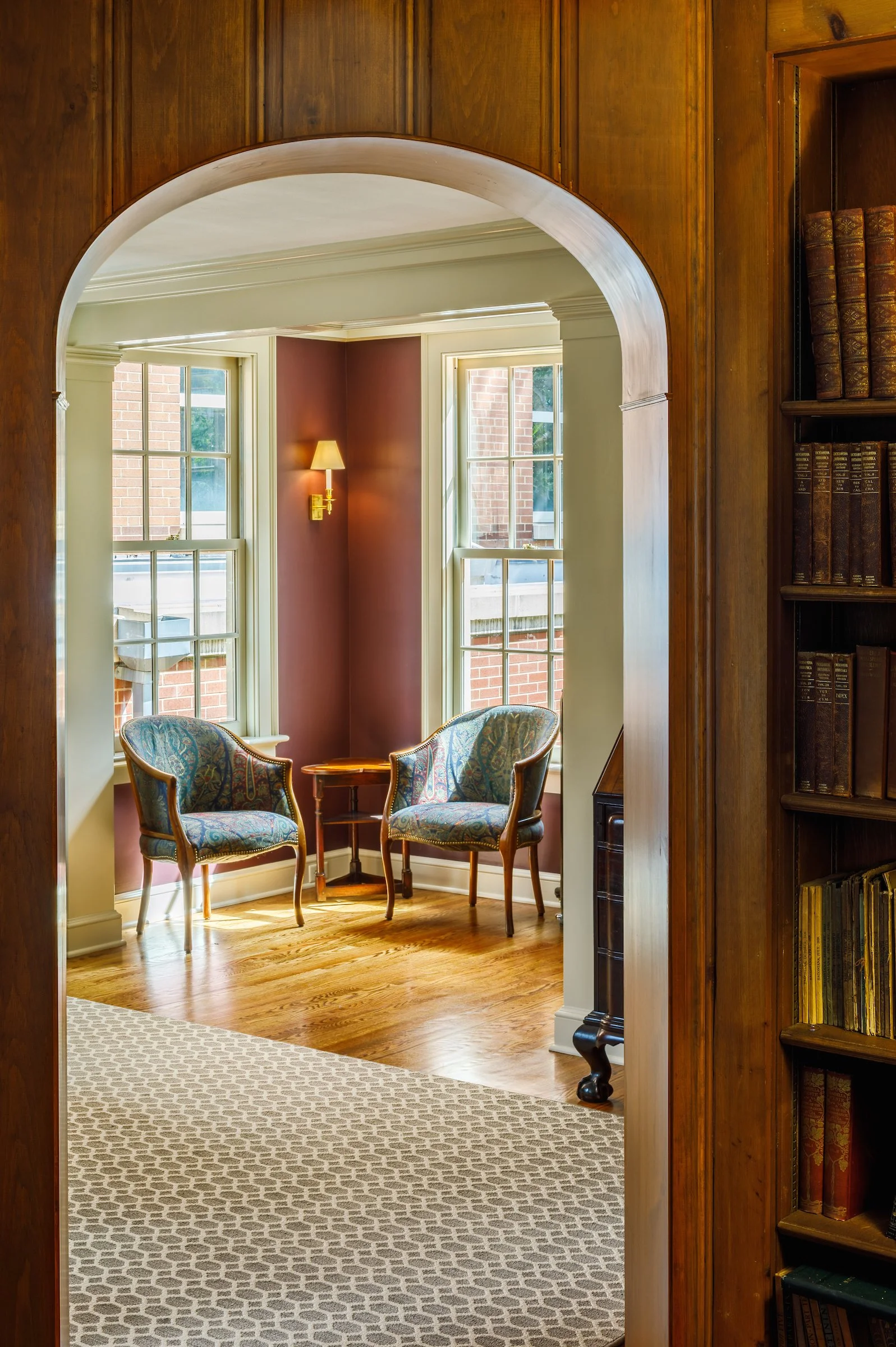This project renovated significant portions of an historic clubhouse with an eclectic range of architectural styles. Originally constructed as a private home c.1815, the house was converted into a private club in 1911, with some rooms renovated in a Jacobean/Elizabethan style, and others retaining their original Federal character.